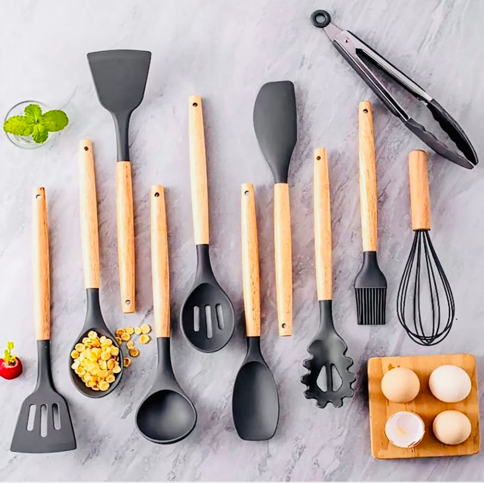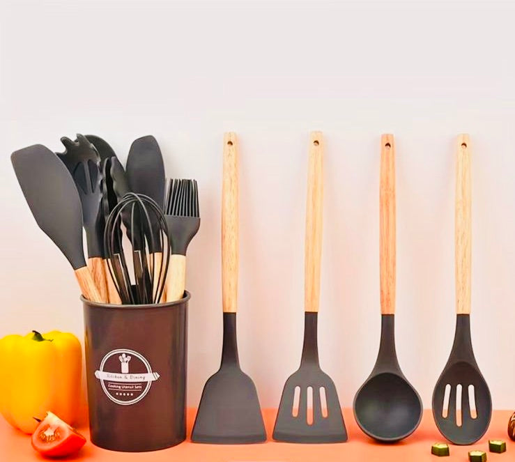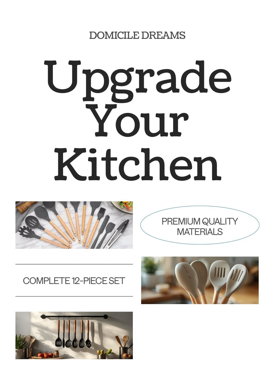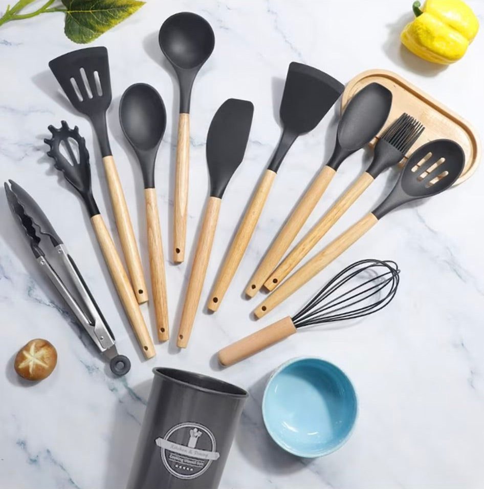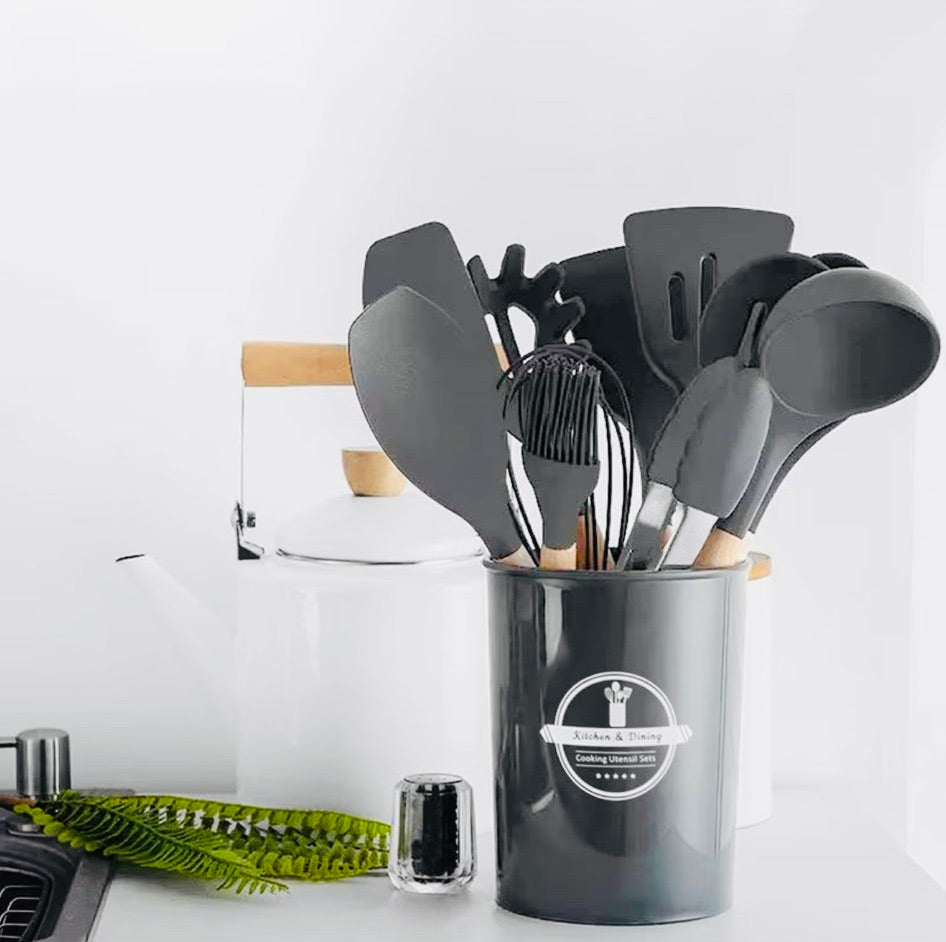 DomicileDreams 12-PCS Silicone Utensils Set With Plastic Holder