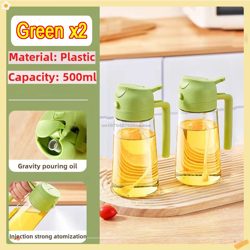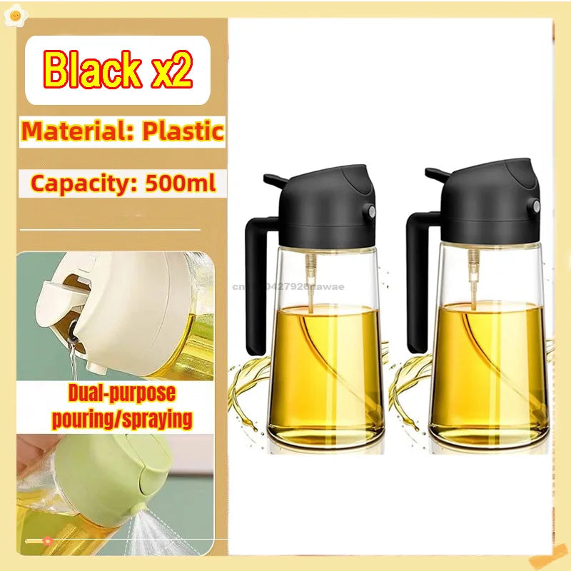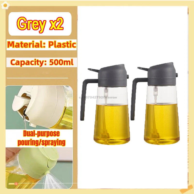 2 in1 Oil Spray Bottle Plastic Kitchen Barbecue Cooking Olive Oil Dispenser Oil Jar Baking Vinegar Soy Sauce Spray Container