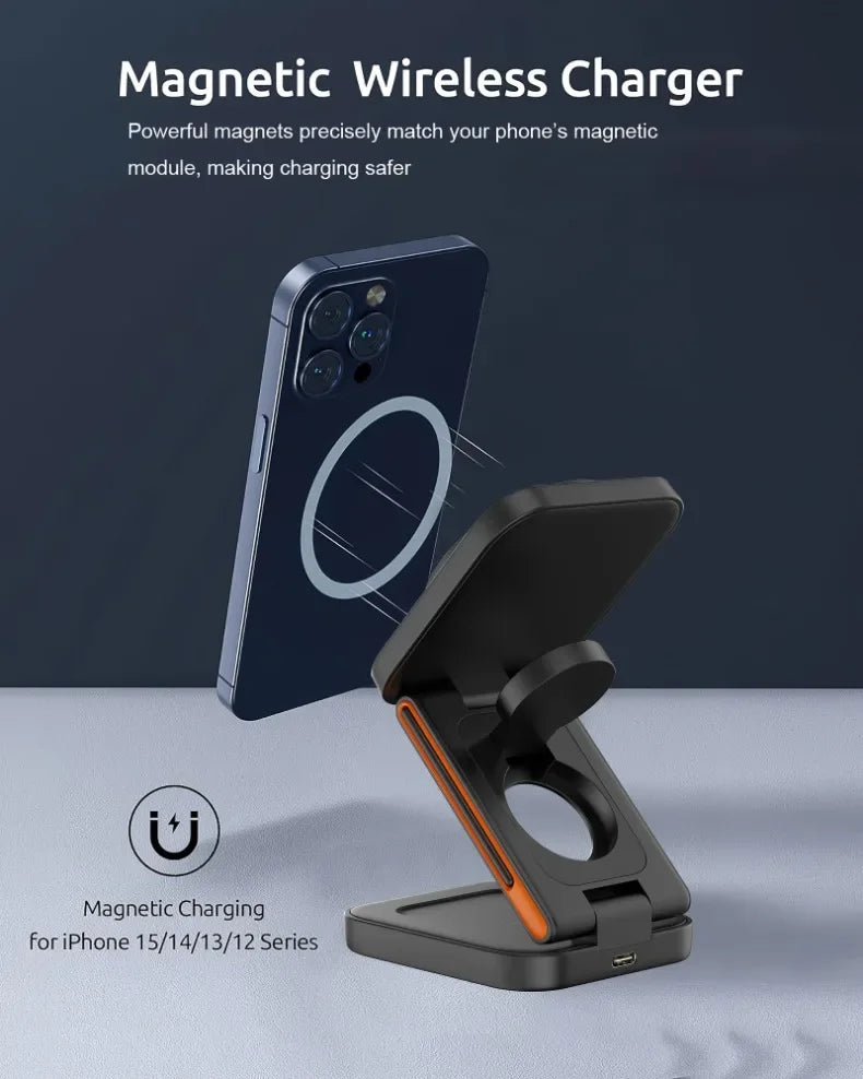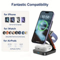 3 in 1 Foldable Magnetic Wireless Charger Stand 30W Fast Charging Station for iPhone 16 15 14 13 12 iWatch 10-2 Airpods Pro Max