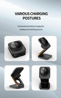 【Travel Essentials: Portable&Foldable Travel Charger】: This foldable travel charger stand is a great addition to your travel gear, lightweight and portable, easy to pack in a bag or suitcase, providing a stable charging experience during your travels or business trips. It also doubles as a phone stand, allowing you to adjust it horizontally or vertically for easy movie-watching or FaceTime calls.