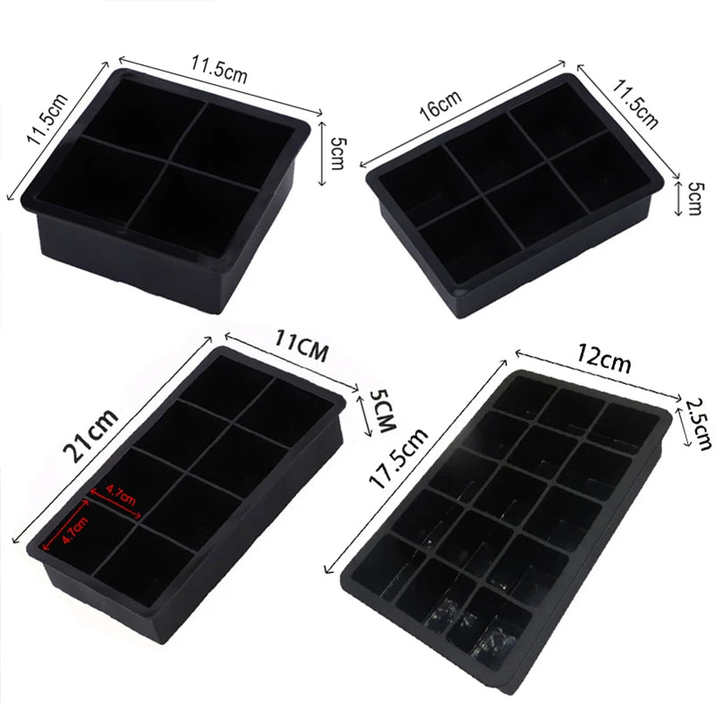 Grid Big Ice Tray Mold Box Large Food Grade Silicone Ice Cube Square Tray Mold Diy Bar Pub Wine Ice Blocks Maker Model