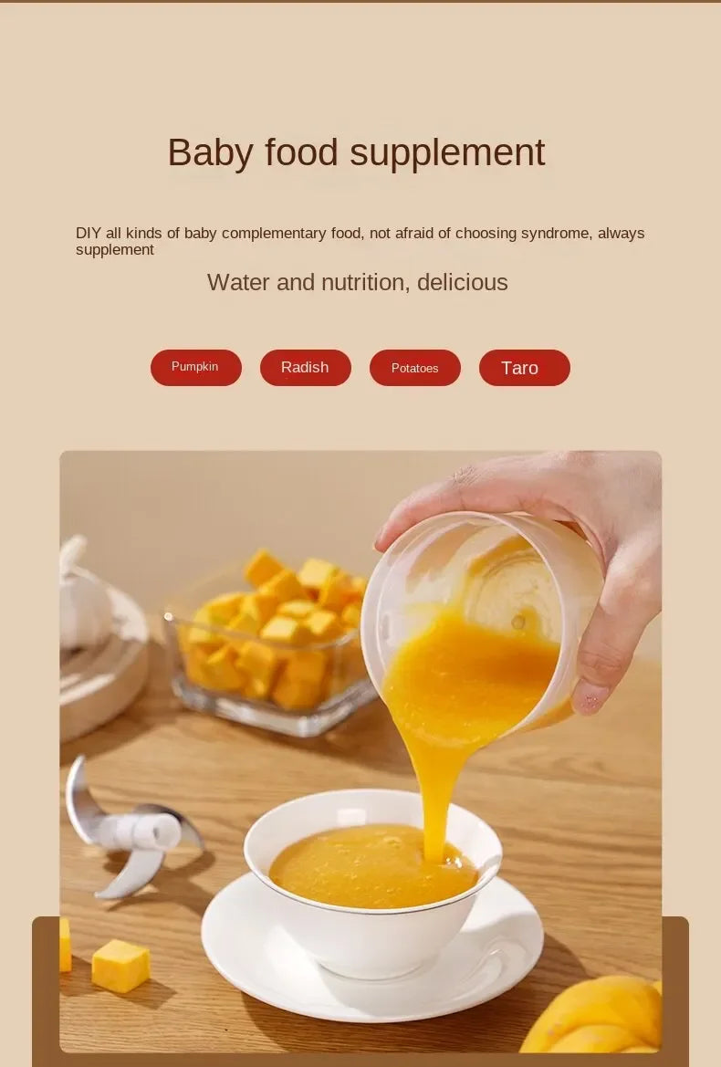 3. After the food is loaded into the cooking cup the separator plate is mounted on the cooking cup and then placed on the Machine Head. When the machine is stabilised, the shuttlecock can press the switch behind the head to start the machine to take care of the food. When the food is too much, the blade may get stuck when the machine starts and will not turn, please take out some food properly and continue to start the machine.